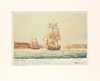 英国海軍の南太平洋調査船で、クック船長(通称)が指揮を執ったEndeavour(エンデバー)を描いた水彩画の複製プリントです。作者は英国の著名な海洋画家