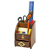 イカリとダイヤモンド型の真鍮飾りが美しい、英国海軍風の木製デスク小物入れです。 シックなハードウッド製。引き出しも付いています。
