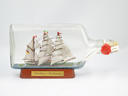 375ccの平型ガラス瓶に、ドイツの帆船 Rickmer Rickmers の精巧なモデルが入っています。