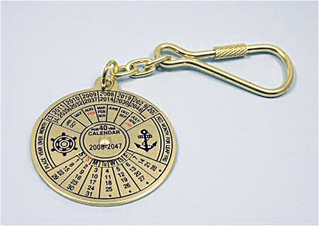 40年先までの任意の年月のカレンダーが即表示される、「40年カレンダー」付の真鍮キーホールダーです。