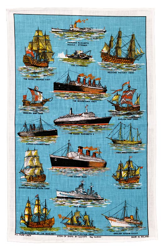 | 英国の歴史に残る船が描かれているティータオル(ガレークロス)です。英国王室御用達Ulster Weavers社製のリネン(麻)製品です。 |