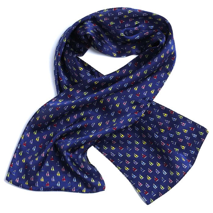 ヨットは意図的に彩度を落とした描かれ方をしていますので派手過ぎず、落ち着いた雰囲気で襟元を包みます。